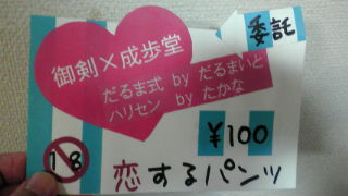 「恋するパンツ」のほうも増刷分がやっと終わってとりあえず全部冬コミに送ってしまうつもりなので、通販のほうは一時停止させて頂きました。また冬コミが終わったら再開したいと思いますのでよろしくお願いします。ミスプリした表紙紙で値札作ったら案外可愛くできたので!